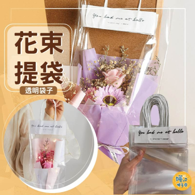 (warmday-現貨快出) 花束透明提袋 字母透明手提袋 禮品袋 包裝袋 禮物 禮品包裝袋 包裝材料 手提袋