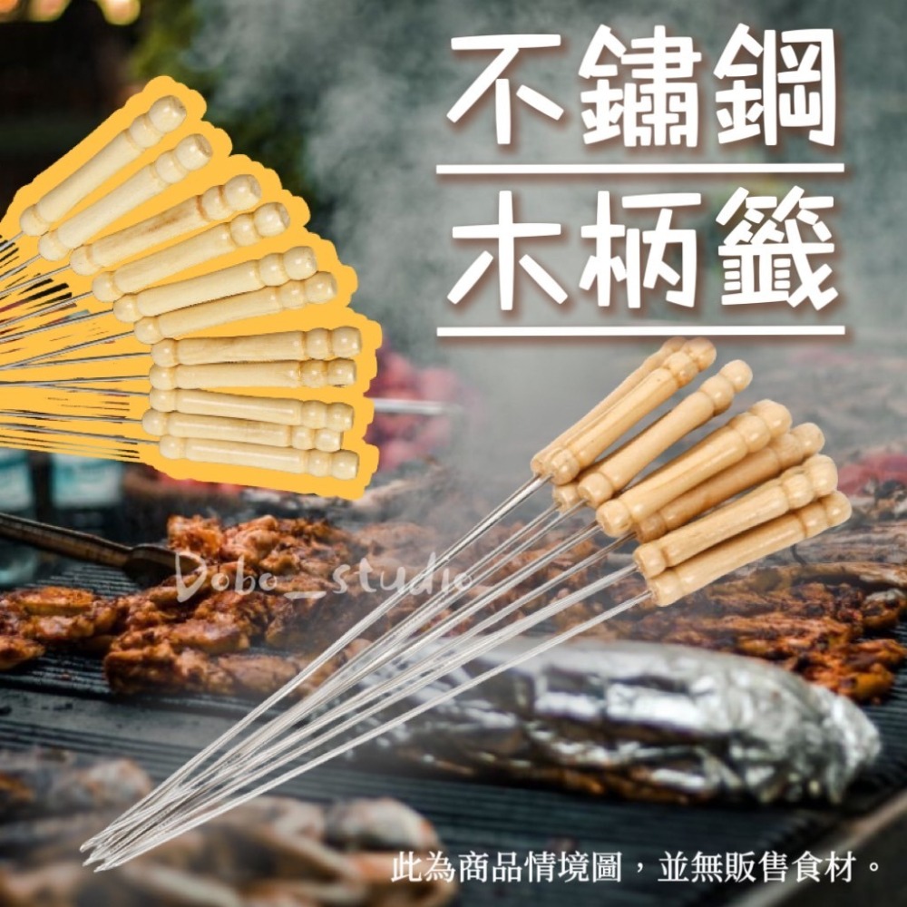 不鏽鋼木柄籤 燒烤BBQ 烤肉神器 中秋烤肉 不銹鋼籤 烤肉籤 烤串 串肉 野炊 烤肉用品 燒烤叉 肉串籤