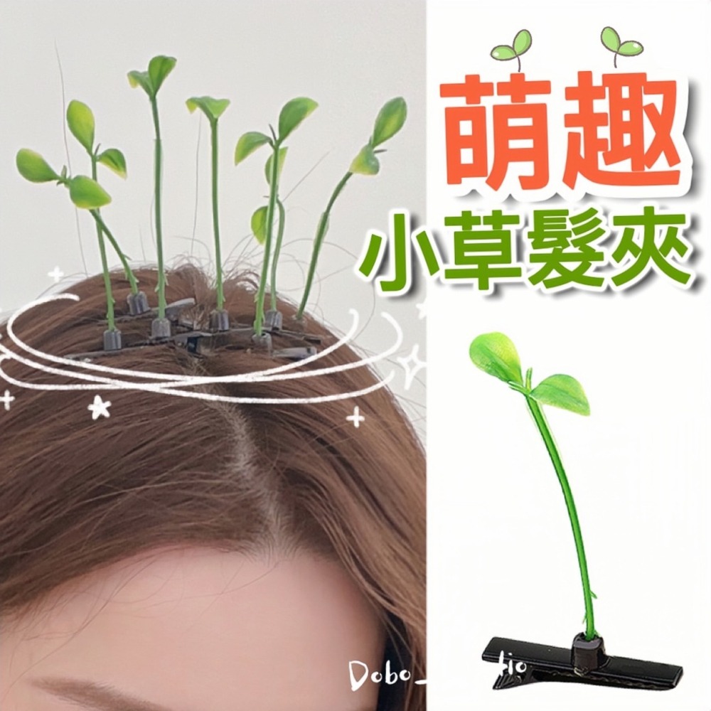 FF菲舤小舖⛵萌趣小草髮夾 賣萌神器 仿真槙物 可愛髮飾 碎髮夾 學生 綠色小草 夾子 發芽小草 髮飾 裝飾 搞怪 惡搞