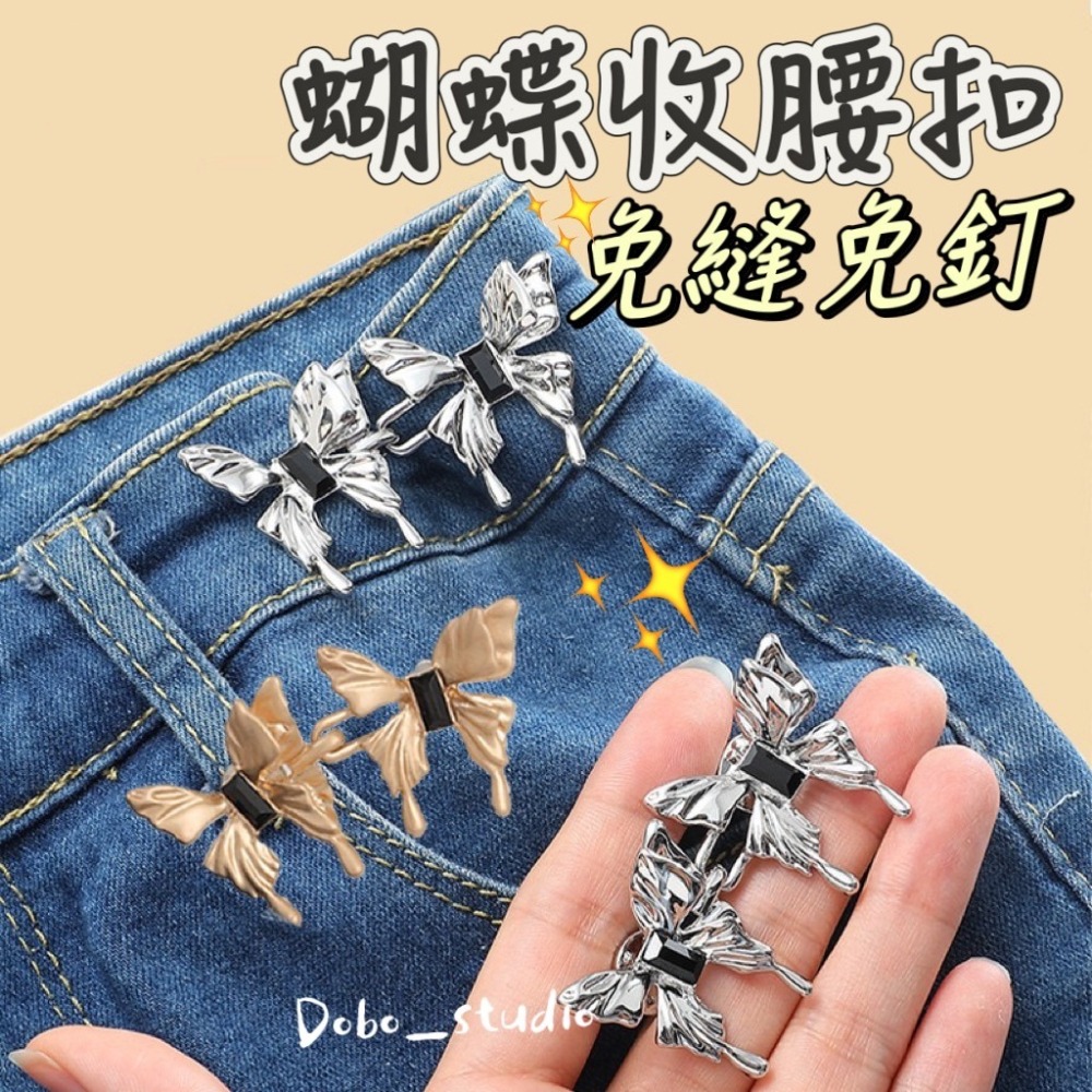 蝴蝶收腰扣 牛仔褲收腰 蝴蝶造型 固定鈕扣 可拆卸免釘 萬用收腰鈕扣 腰圍調整 收腰神器 復古扣 紐扣釘