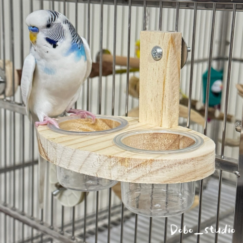 鳥我一下好嗎🍀鸚鵡實木雙杯架 鸚鵡食盆 原木杯架 鸚鵡飼料架 餵食器 鳥籠用品 虎皮 飼料杯架 食盆 小型鸚鵡飼料盒