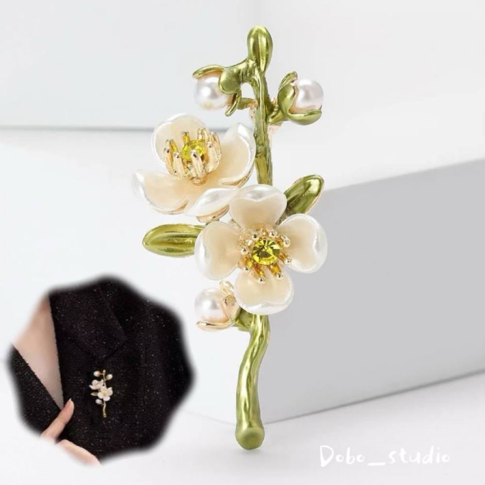 鳥我一下好嗎🍀山茶花胸針 茉莉花胸扣 小胸針 韓式雙葉胸針 宴會胸針 奢華大氣胸針 防走光胸針 袖口暗釦 固定領口胸針