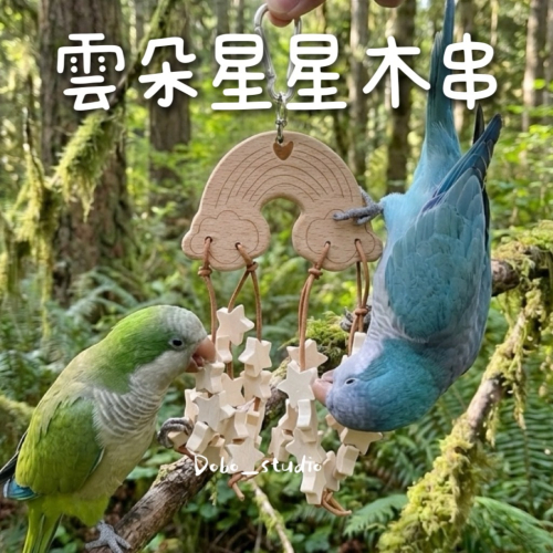 鳥我一下好嗎🍀雲朵星星木串 雲朵串 鸚鵡咬咬串 懸掛原木串 木質皮繩串 木製玩具 腳下抓握 天竺鼠 兔子 鸚鵡 牡丹 鳥