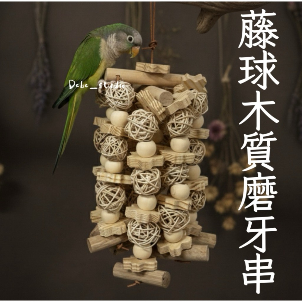 藤球木質磨牙串 啃咬木塊 籐球磨牙串 大中小型鸚鵡 和尚鸚鵡 鸚鵡啃咬玩具 攀爬抓握串 磨牙木塊 磨爪串