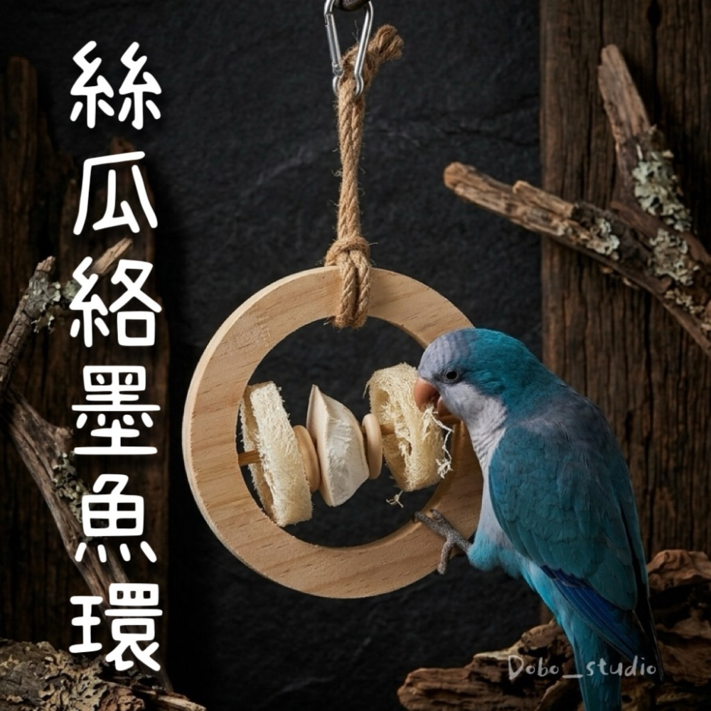 鳥我一下好嗎🍀絲瓜絡墨魚環 鸚鵡啃咬抓握鞦韆 木鞦韆 鸚鵡發洩玩具 鸚鵡磨牙骨 啃咬絲瓜烙 絲瓜墨魚環 情緒發洩玩具