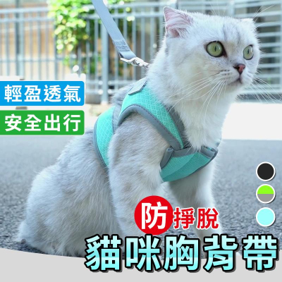 【雙重防掙脫】貓咪胸背帶 寵物外出牽引繩 貓咪牽繩 透氣胸背 貓咪外出繩 遛貓繩 貓牽繩 胸背帶 項圈牽繩 貓背心衣服