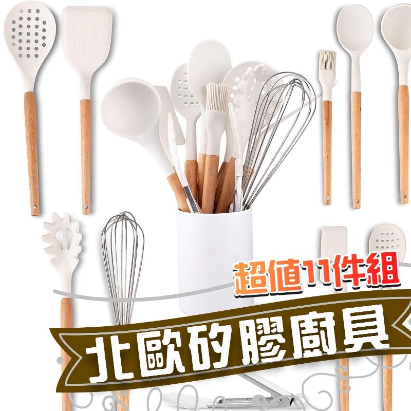 【呼嚕生活館24H出貨】北歐白色矽膠廚具11件套不沾鍋廚具組 廚具 煎鏟 鍋鏟 湯勺 廚房用具 烘焙料理 打蛋器 餐具