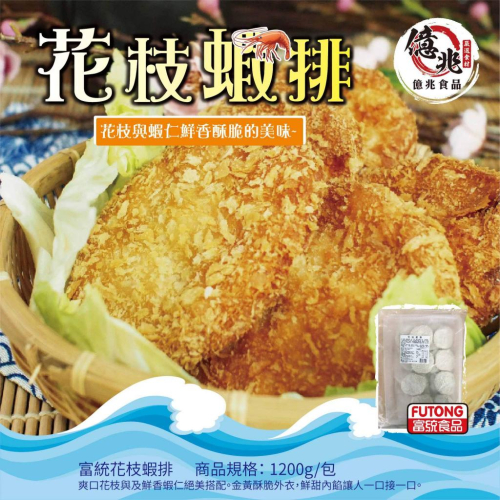 品名:富統花枝蝦排 淨重:1200g 過敏原資訊:本產品含魚類、小麥、大豆及其製品,不適合其過敏體質者食用。 保存條件:-18℃以下冷凍 保存期限:一年 有效日期:標示於袋上