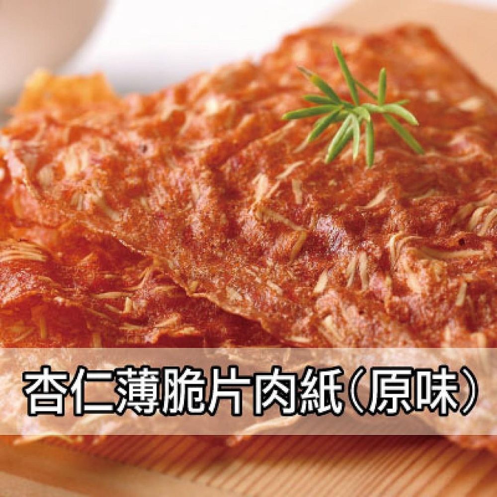 杏仁薄脆片肉紙 淨重:50公克 內容物:豬肉,杏仁片,糖,醬油,鹽,肉桂粉,大豆水解蛋白,棕櫚油,葵花籽油,中鏈三酸甘油酯,醣類(葡萄糖,乳糖,L-麩酸鈉,D-山梨醇液(甜味劑),醋酸澱粉,異抗壞血酸鈉(抗氧化劑),生育醇(維生素E)(抗氧化劑),甘草萃(甜味劑),甘草素(甜味劑),醋磺內酯鉀(甜味劑),香料,亞硝酸鈉 本產品含有乳糖,不適合其過敏體質者食用 營養標示 每一份量50公克 本包裝含1份 每份 每100公克 熱量 233大卡 466大卡 蛋白質 16公克 32.0公克 脂肪: 9.45公克 18.9公克 飽和脂肪 2.25公克 4.5公克 反式脂肪 0公克 0公克 碳水化合物 20.95公克 41.9公克 糖 16.75公克 33.5公克 鈉 555毫克 1110毫克 提醒您:杏仁脆片肉紙屬於易碎商品,出貨前盡管都會加強包裝,並確認商品都是完好的良品, 但運送路程遠加上過程中容易碰撞到而碎裂! 所以事前的溝通很重要,若您扔是要配送這項商品,必須跟您說明無法退換貨! 貨運公司我們已經選擇台灣最好的黑貓宅急便了,希望大家能夠體諒,謝謝~