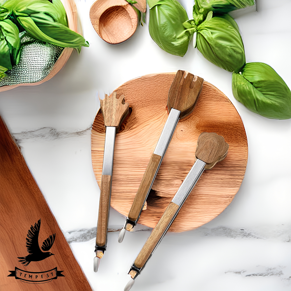 2.高品質材料:沙拉夾採用耐用的不鏽鋼與原木材質製造,確保其耐用性和抗腐蝕性。夾頭能夠輕鬆夾取沙拉成分,而原木手柄則提供舒適的握持感。