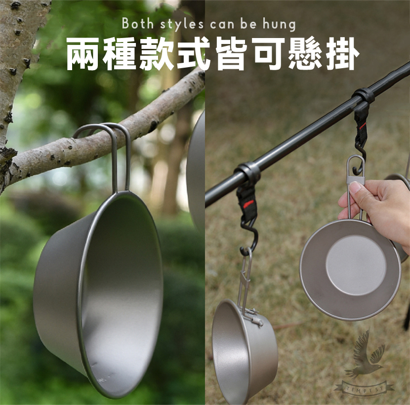 我們的純鈦雪拉碗設計獨特,配備便捷的懸掛收納手柄。您可以將碗掛在背包或其他戶外裝備上,節省寶貴的空間。此外,手柄還可摺疊,讓碗的體積更小,便於攜帶和儲存。
