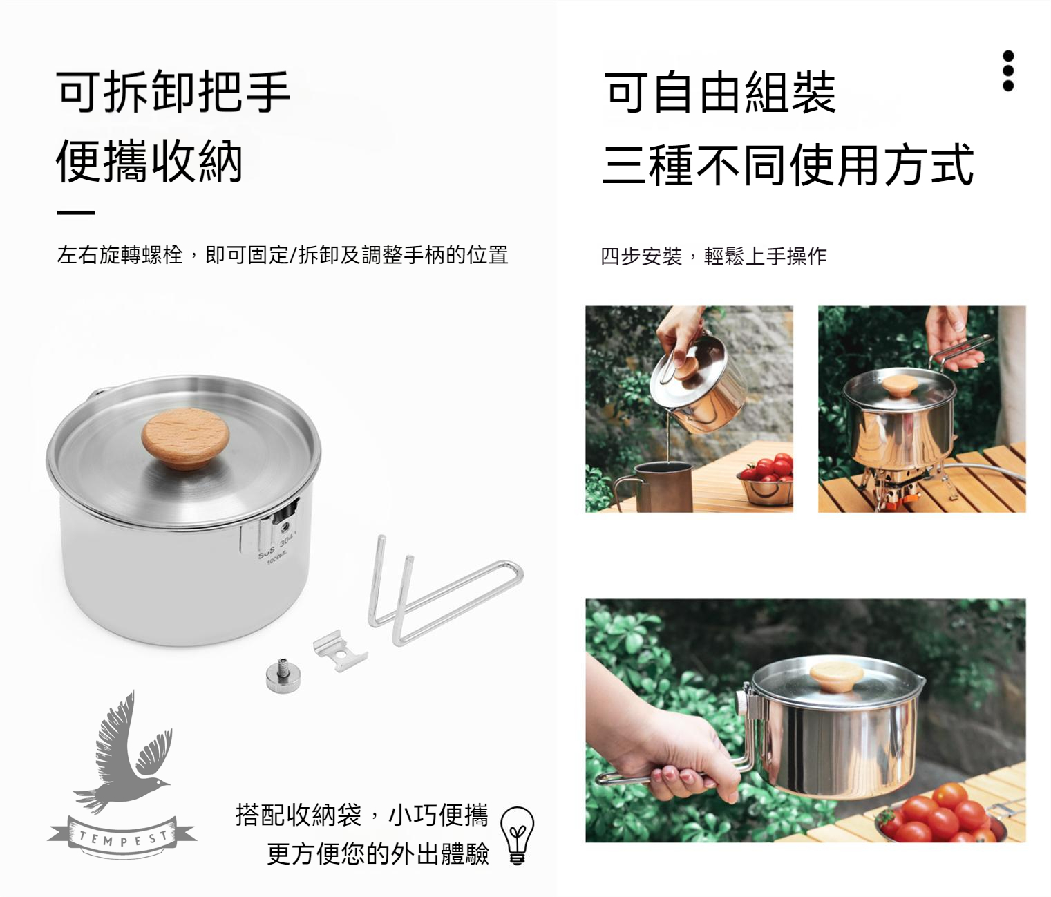 3️⃣ 鍋蓋木柄:鍋蓋配備木柄,貼心防燙,讓您安心享受烹飪樂趣。