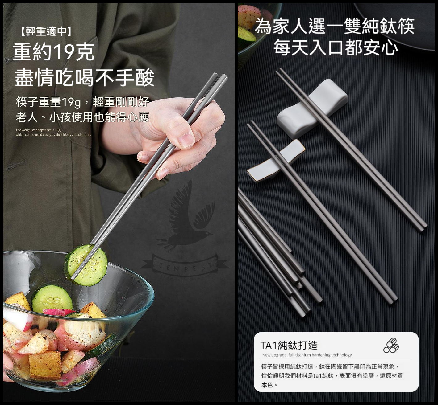 🟦 環保無菌:鈦材質具有優異的抗菌性能,不易滋生細菌,並且不會釋放有害物質到食物中。使用我們的鈦筷子,您可以享受更加衛生、安全的用餐體驗,同時對環境友好。