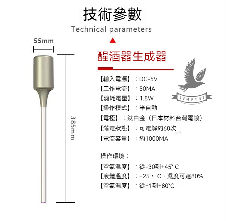 🔹材質:日本進口鈦白金電解電極,電極鍍層台灣製作