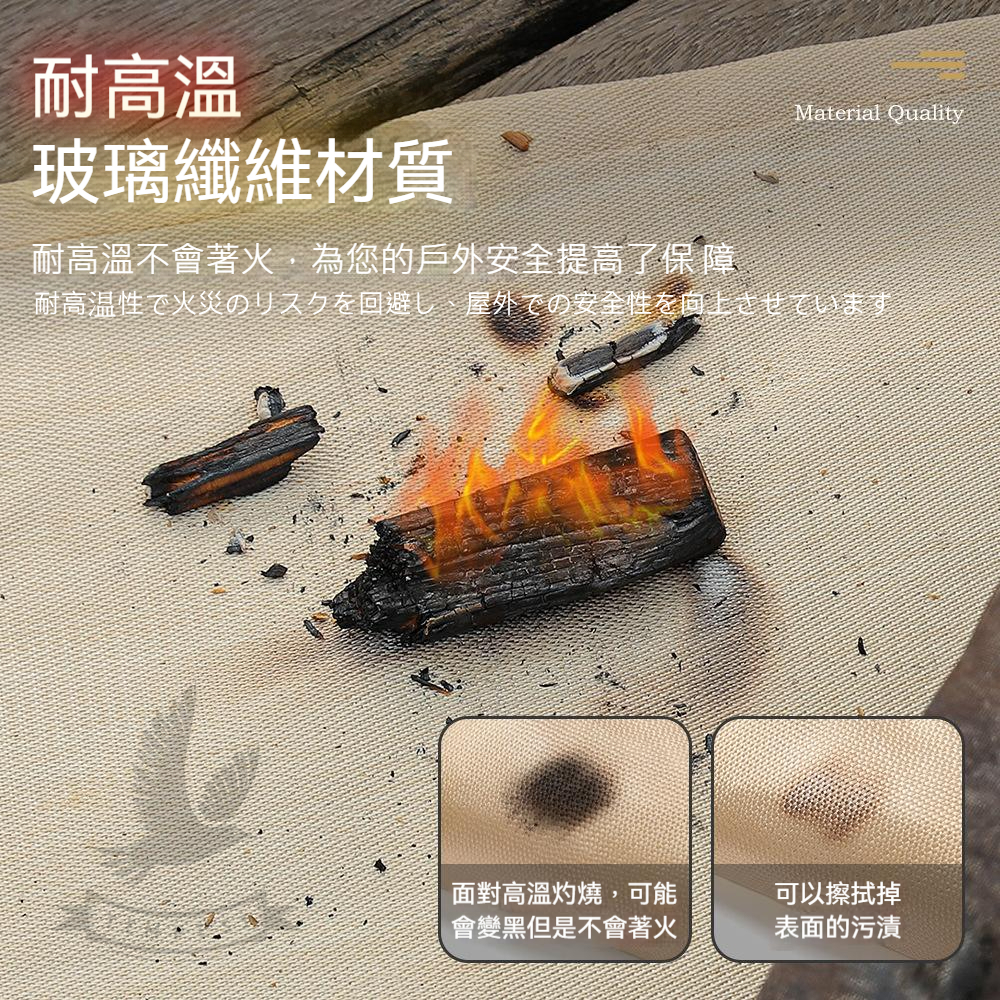 多功能設計:防火毯不僅可以放置在火柴下方,還可用作座墊、野餐墊、草坪保護墊等,提供更多實用性選擇。