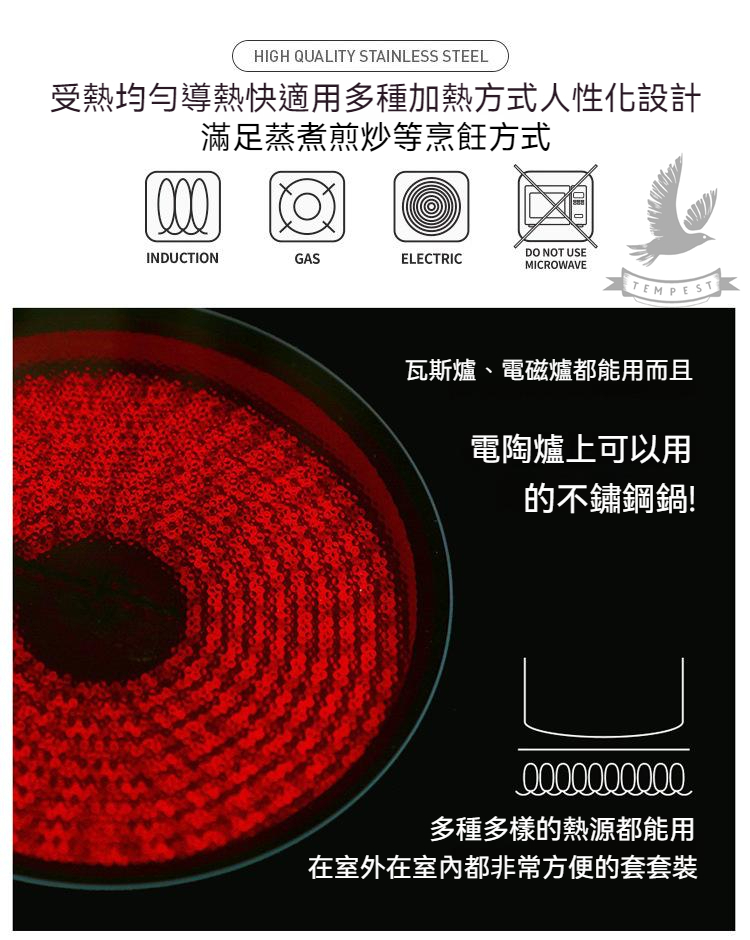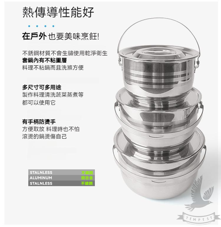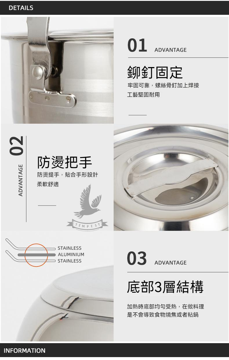 🔹 優質材料:我們的鍋具採用高品質的410不鏽鋼材料,堅固耐用,抗腐蝕,為您提供長期使用的保證。