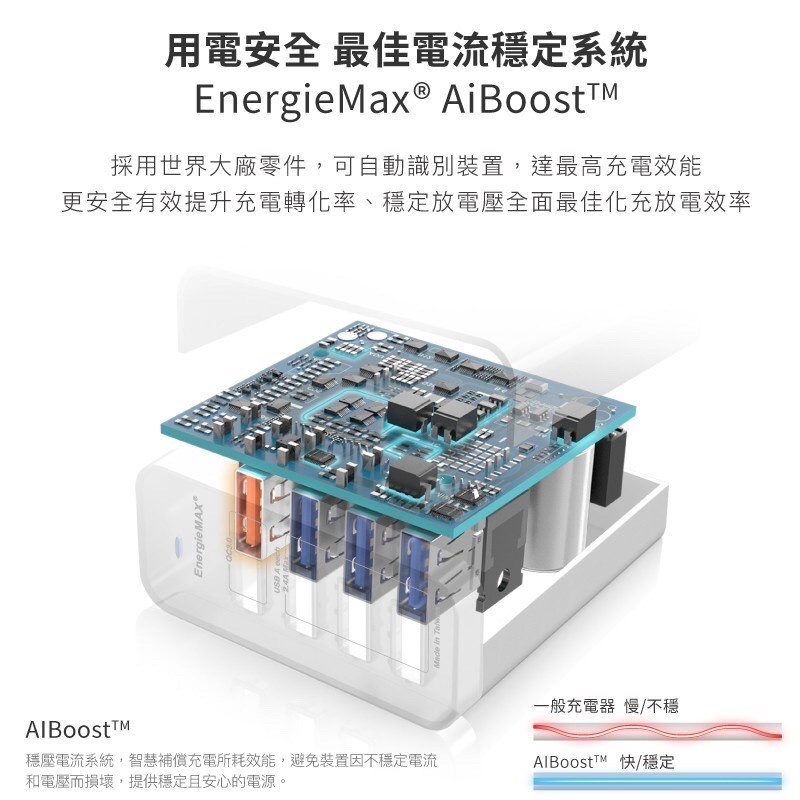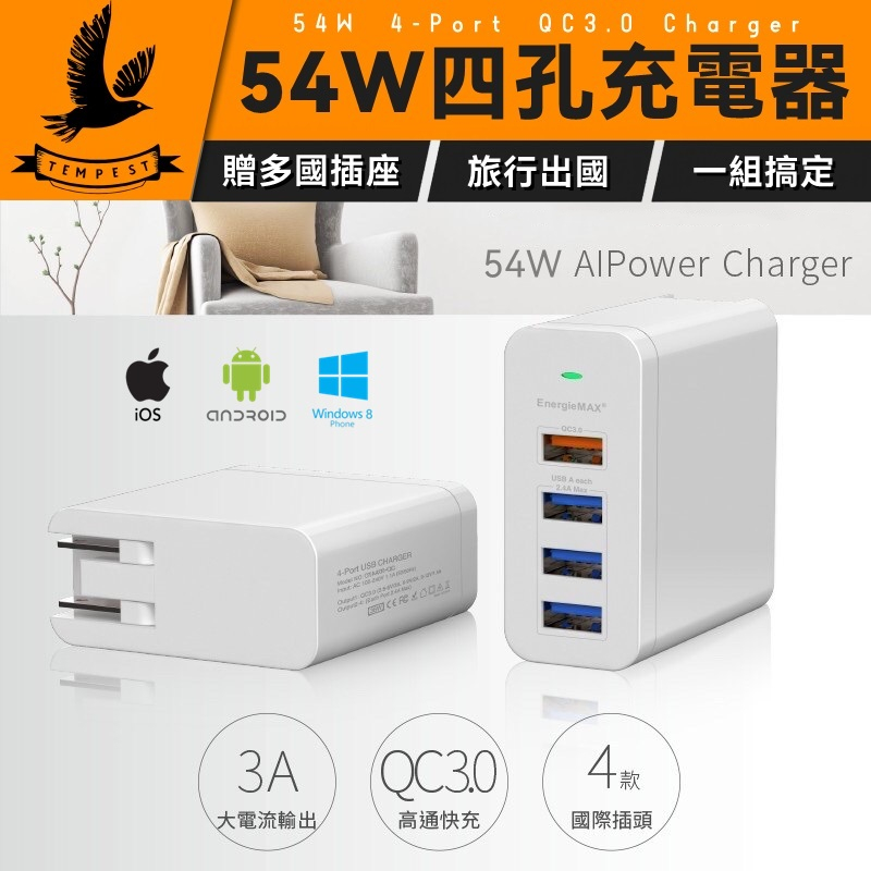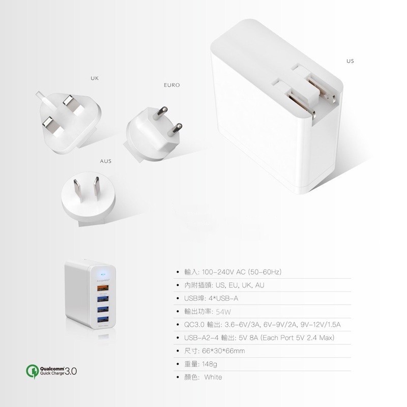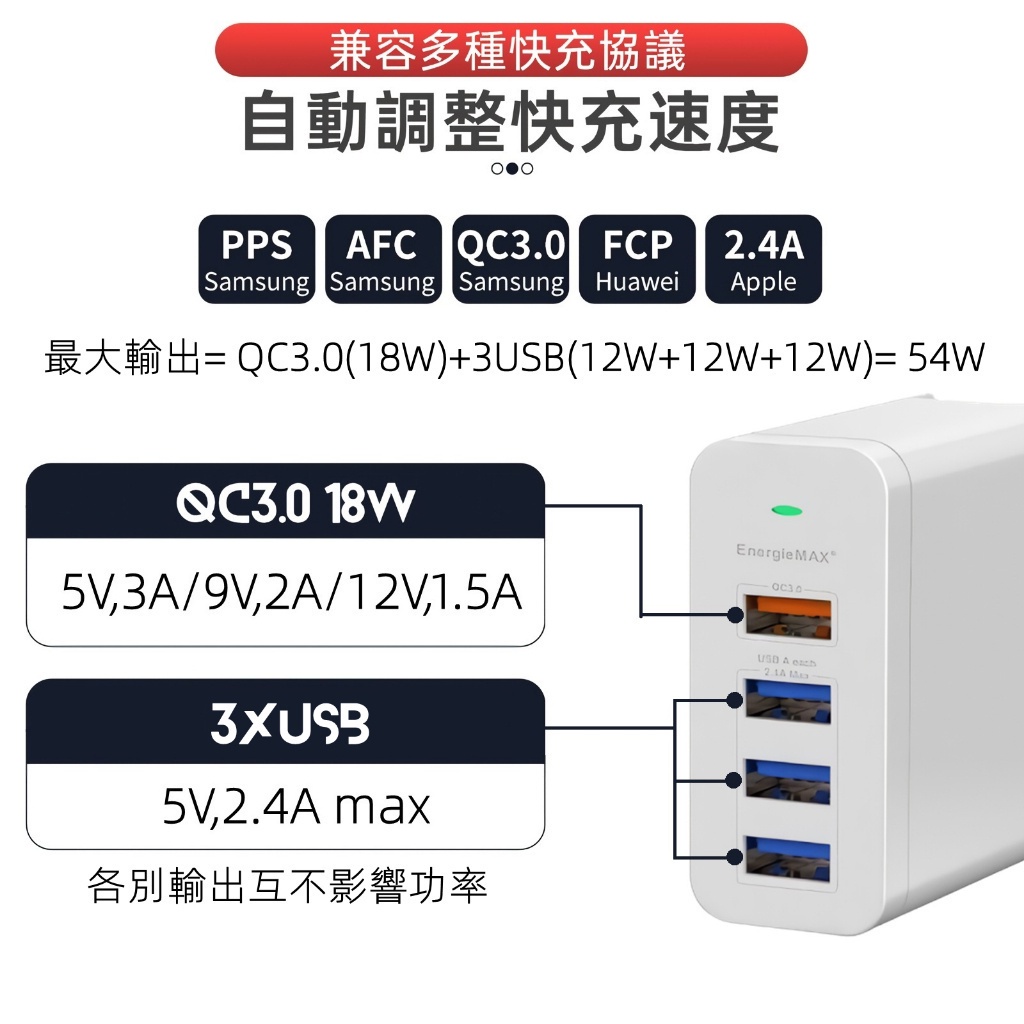 🔹名稱: ENERGIEMAX 54W QC3.0 4Port快充充電器