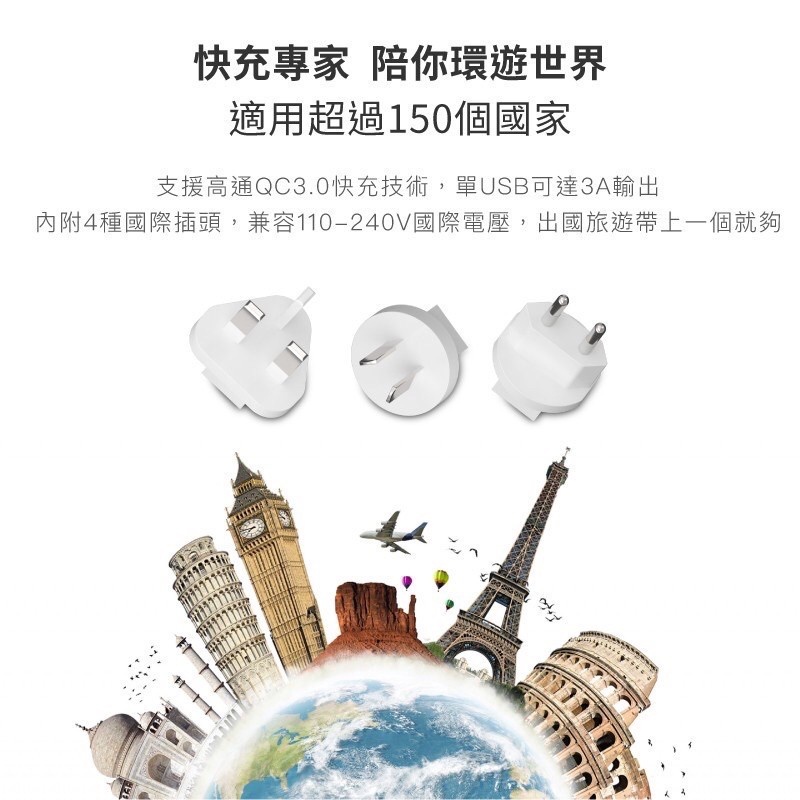 USB-1 QC3.0輸出:3.6V~6V/3A、6V~9V/2A、9V~12V/1.5A (MAX 18W)