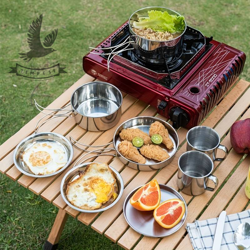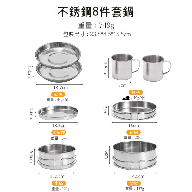⚖️ 便捷收納:8套件組合,可堆疊一體收納,節省空間,輕鬆攜帶,適合露營旅行使用。