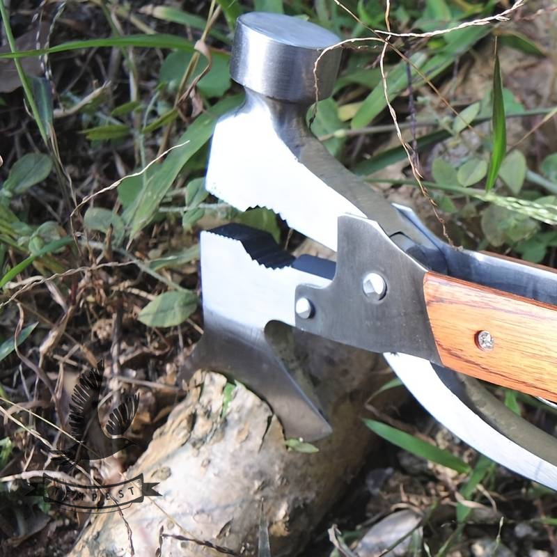 🌟 多功能一體:戰術斧錘結合多項功能,包括錘子、切線鉗、鋸刀、平口鉗、手斧、螺絲起子、開瓶器、鋼刀等,讓您應對各種情況。