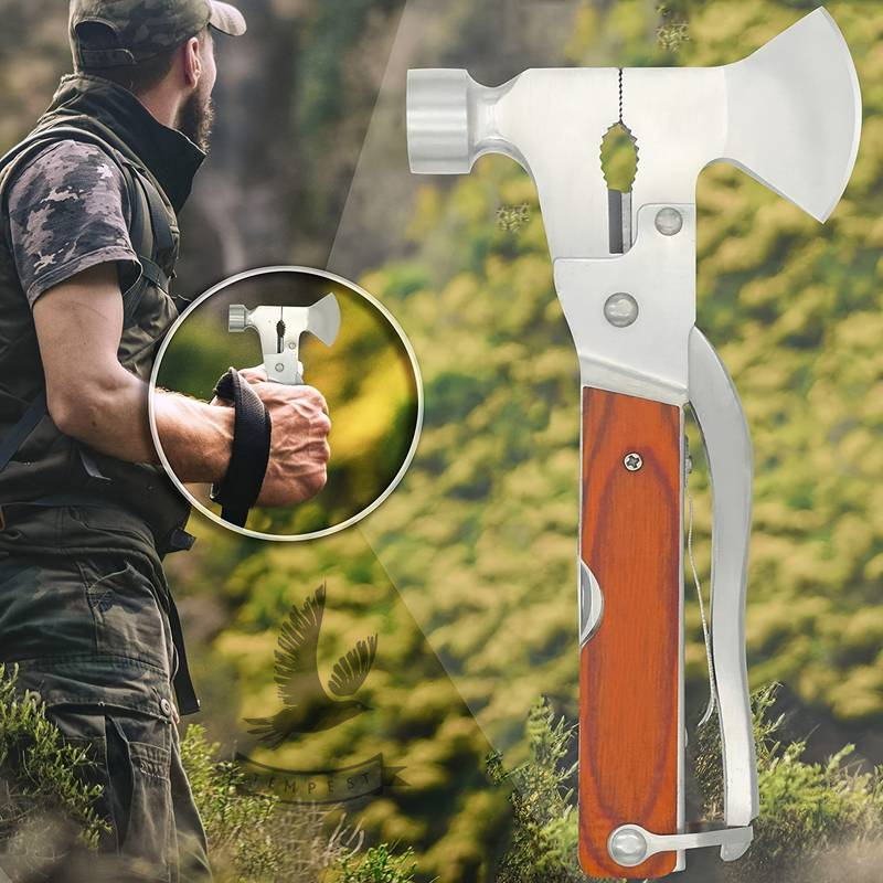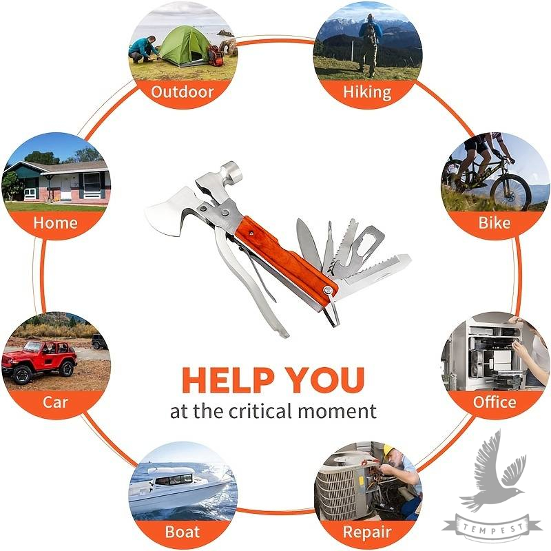 戰術斧錘是您戶外冒險的得力工具。集結錘子、切線鉗、鋸刀、平口鉗、手斧、螺絲起子、開瓶器、鋼刀等多功能於一體,讓您在野外探險或戶外活動中輕鬆應對各種挑戰,是堅固可靠的多功能工具。