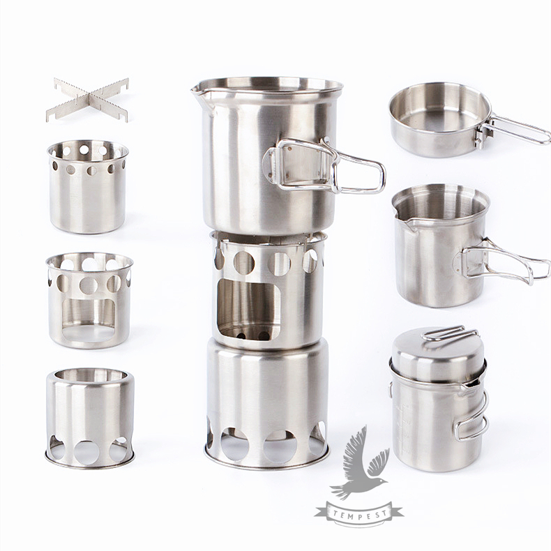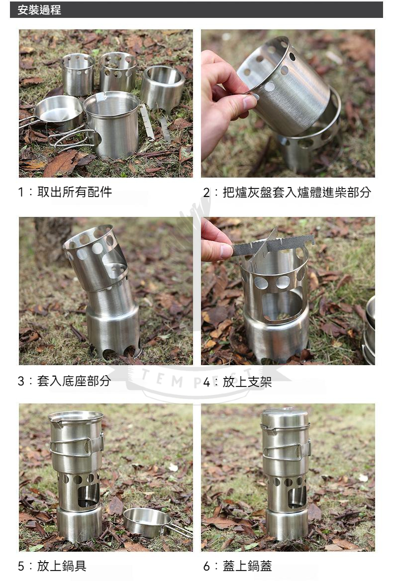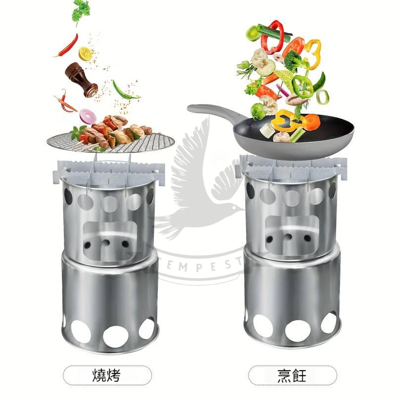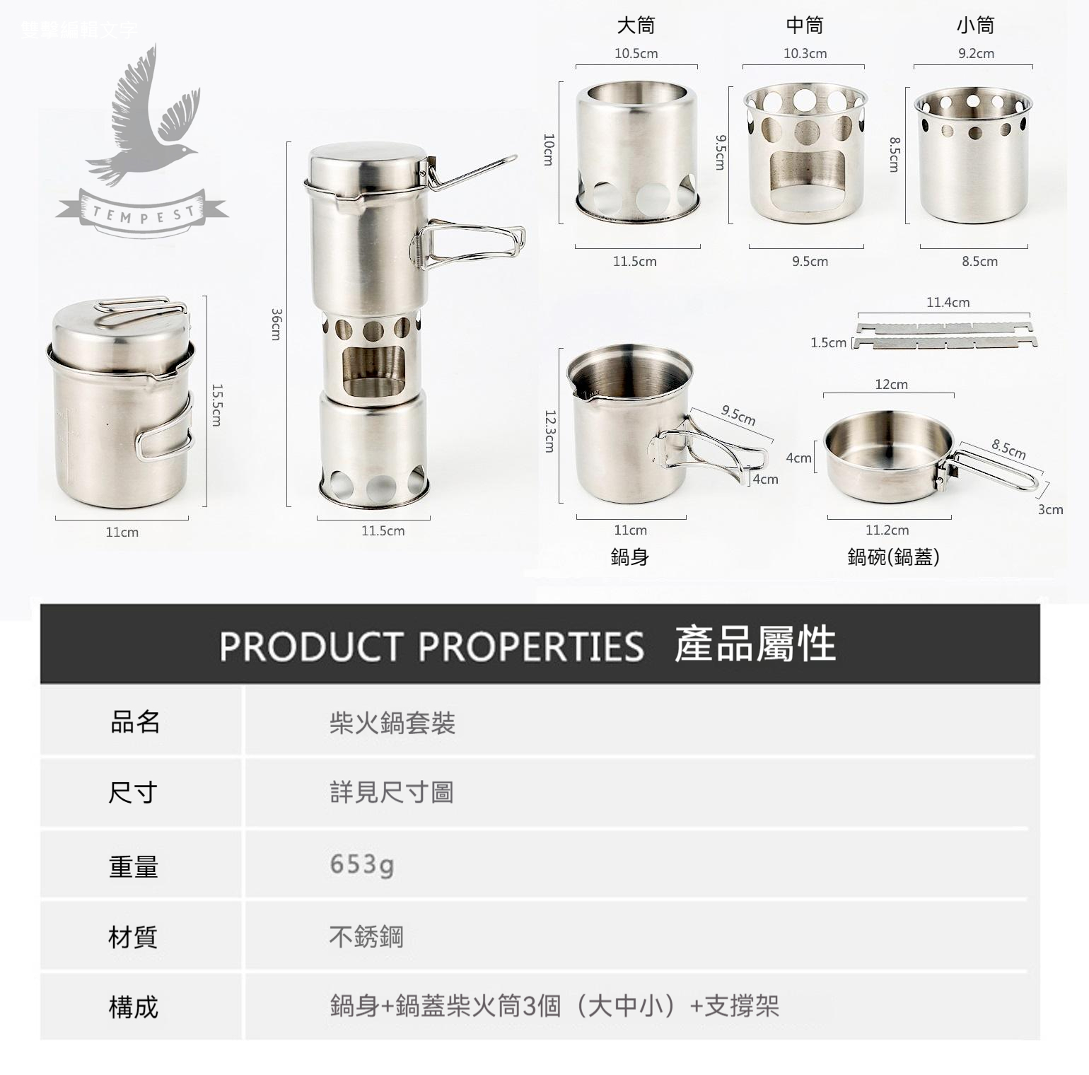 🟦 便攜輕便:柴火酒精爐鍋具組整體重量輕巧,方便攜帶和儲存,是您戶外露營、旅行或野餐的理想選擇。