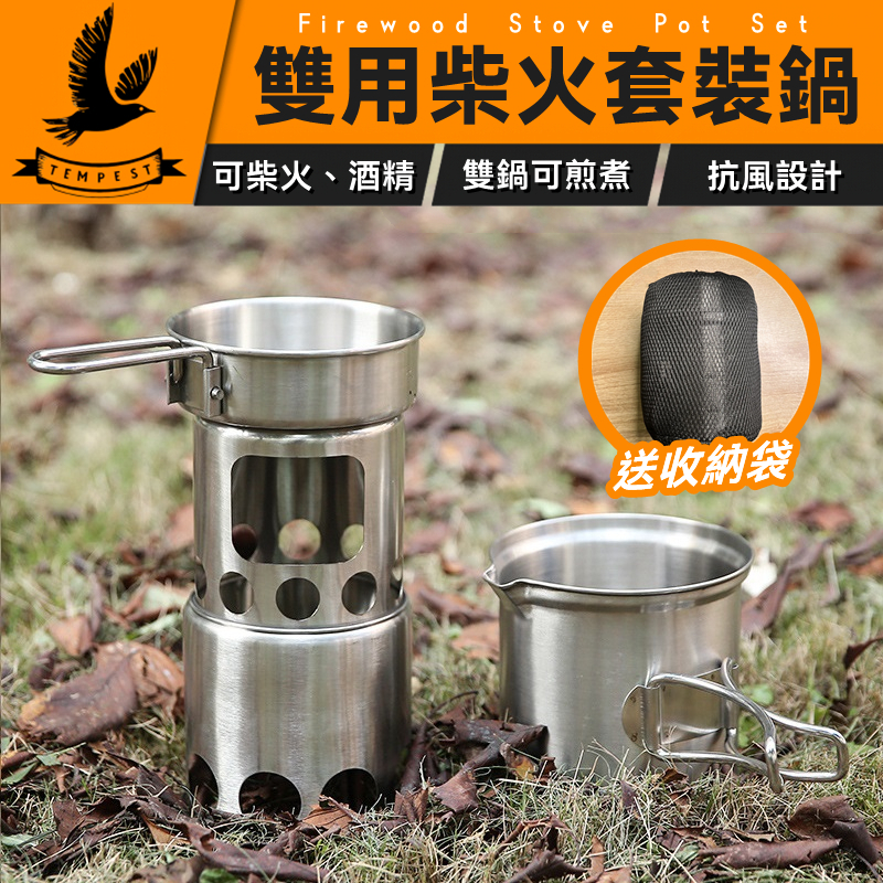 🟦 多功能設計:柴火酒精爐鍋具組包含兩個鍋子,一個用於煮食,另一個則用於進食,讓您在露營或戶外烹飪時擁有更多的選擇和便利。