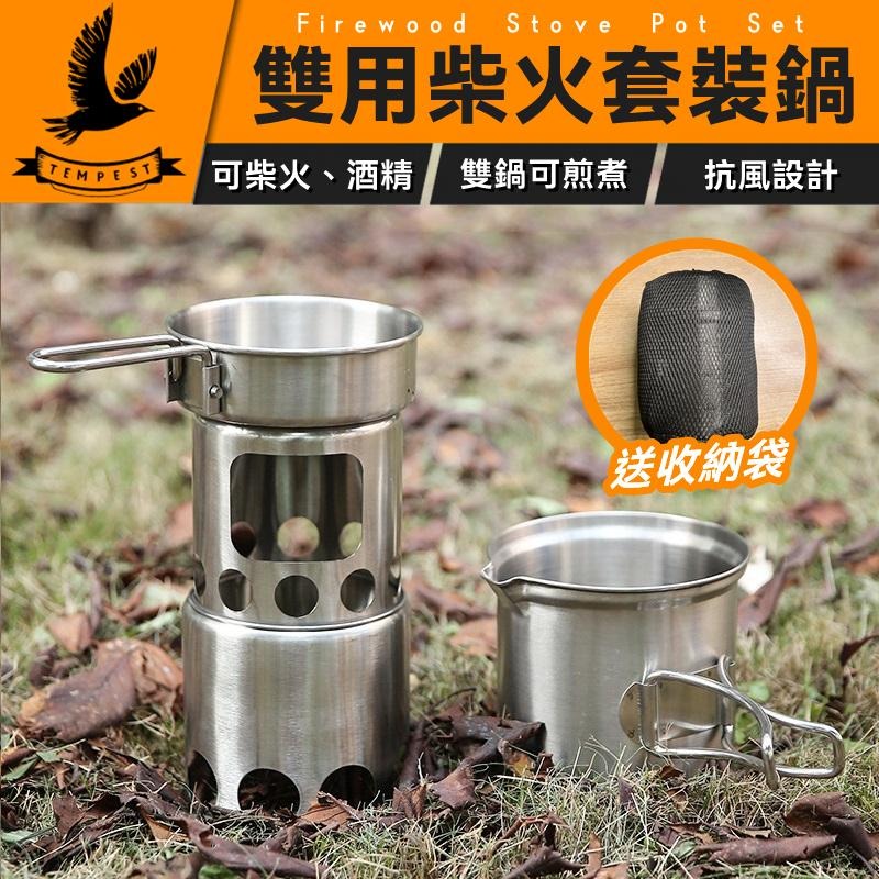 🔹名稱:雙用不鏽鋼酒精柴火爐套鍋