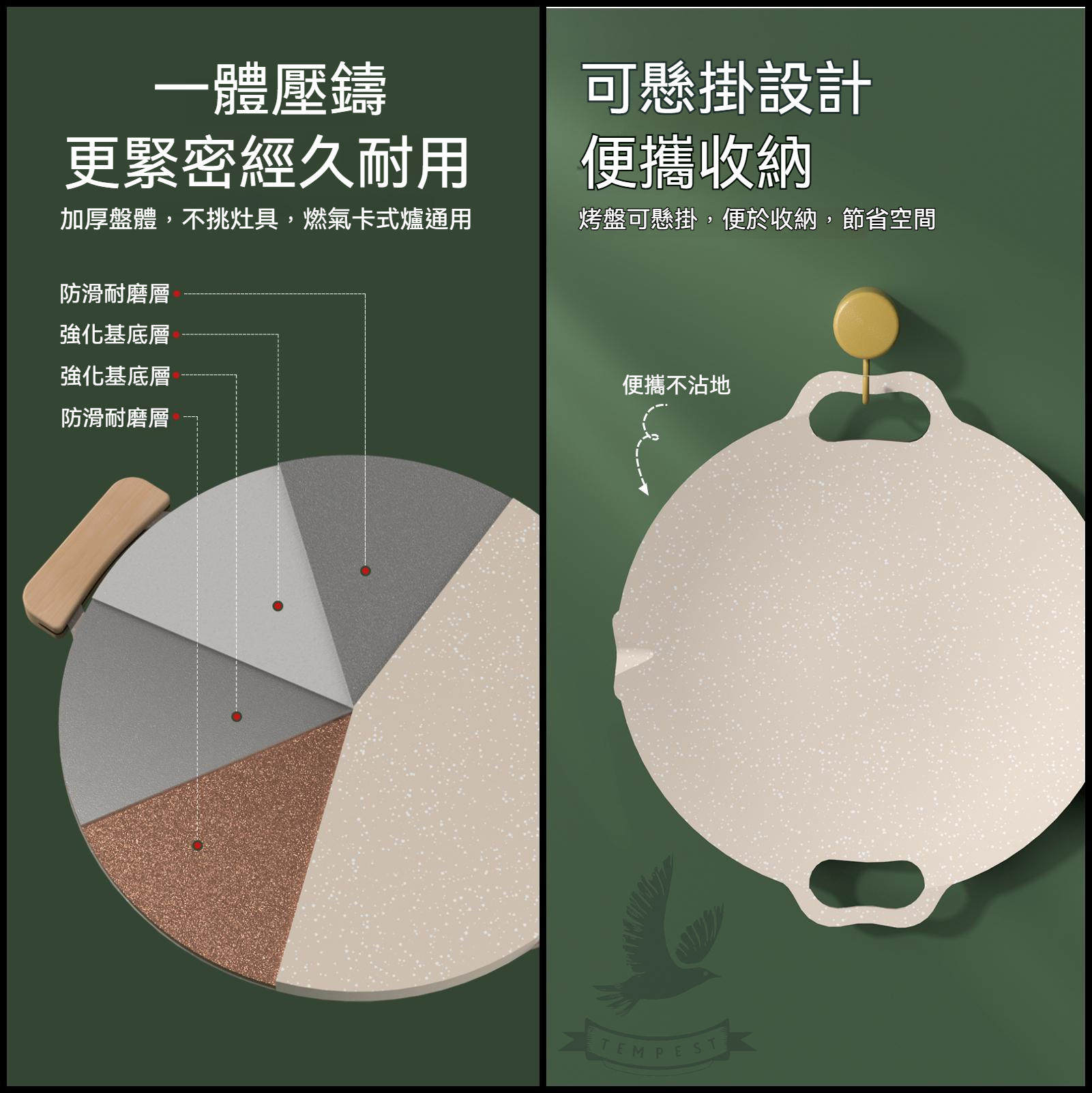 探索美食的無限可能,讓您的烹飪達到新的高度!我們自豪地呈獻麥飯石烤盤,一款擁有出色的不沾鍋特性和人性化設計的廚房必備工具。無論您是一位有經驗的廚藝大師還是新手入門者,這款烤盤都能為您提供卓越的烹飪體驗。