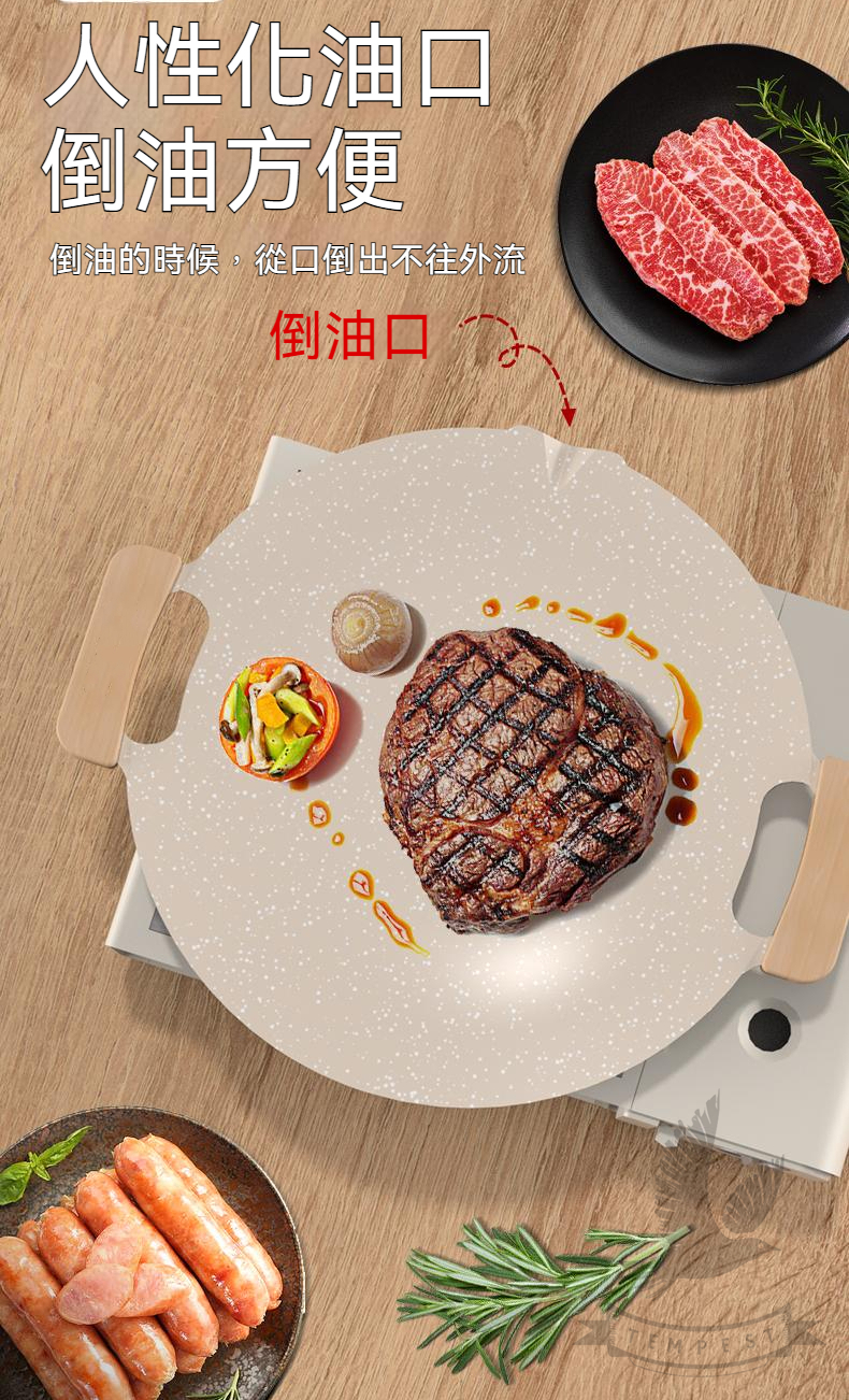 🥘 優點一:出色的不沾鍋特性:麥飯石烤盤採用先進的不沾鍋技術,讓您輕鬆烹飪,無需擔心食物附著在鍋底,清潔更加輕便。