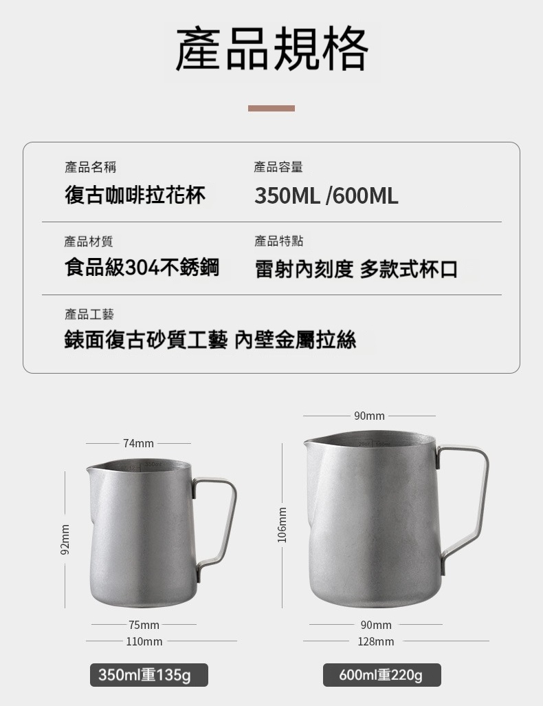 🔹名稱:古典不鏽鋼拉花咖啡杯子