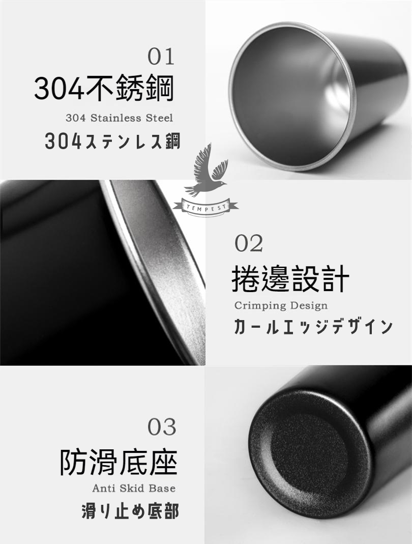 優質材質:這款杯子由優質的SUS304不鏽鋼製成,確保耐用性和優越的耐腐蝕性,使您能長期使用,無需擔心生鏽或變形的問題。