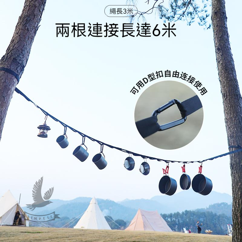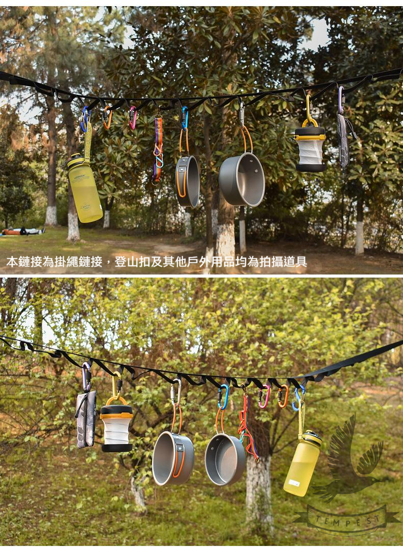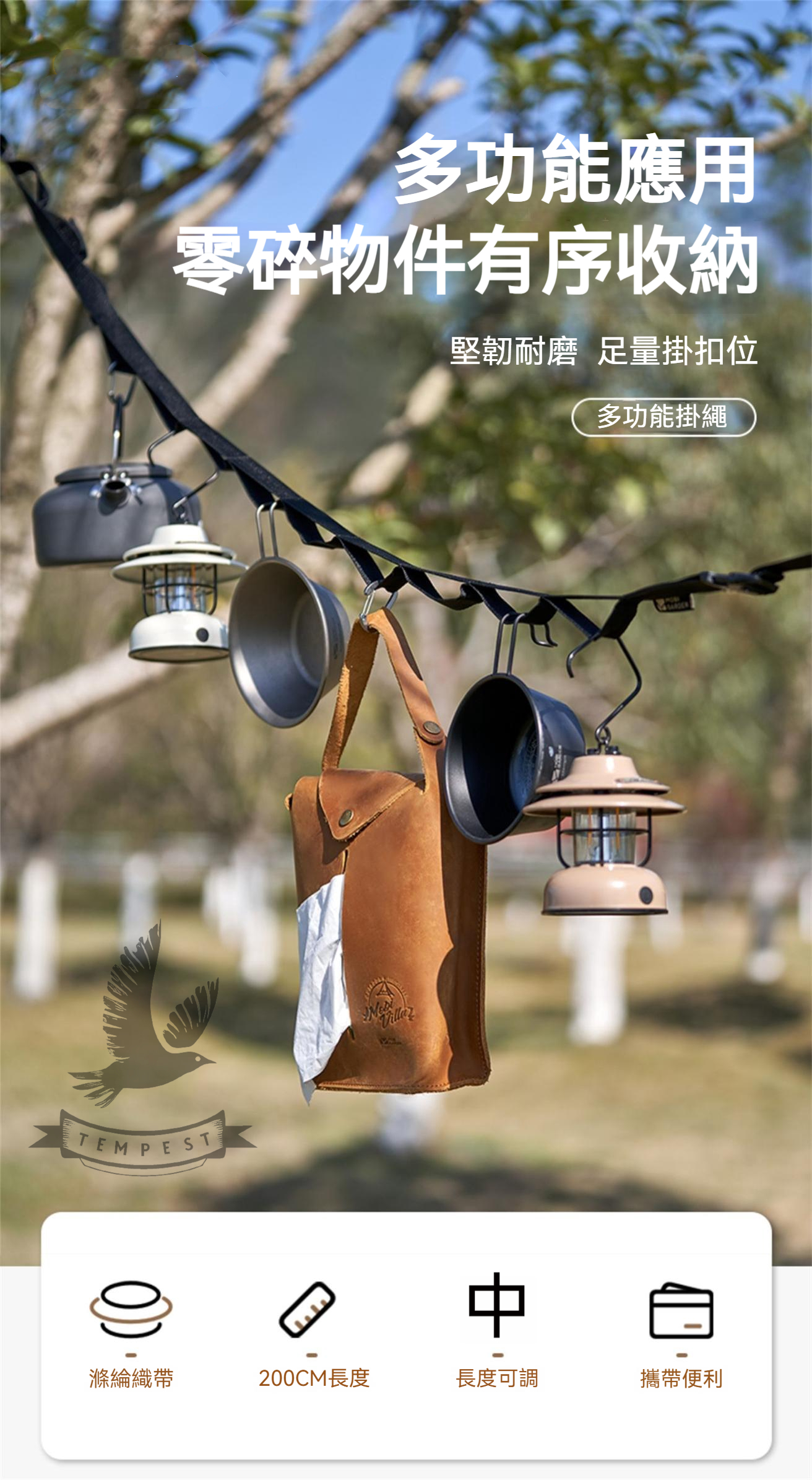 🏕️ 戶外露營:露營掛繩是您露營時的好幫手,可掛放餐具、營位裝備等,使您的露營生活更加井然有序。