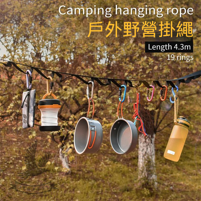 💡 多功能使用:露營掛繩擁有19個掛勾孔,遠多於普通掛繩,可同時掛放多種物品,與傳統掛繩相比更具實用性。