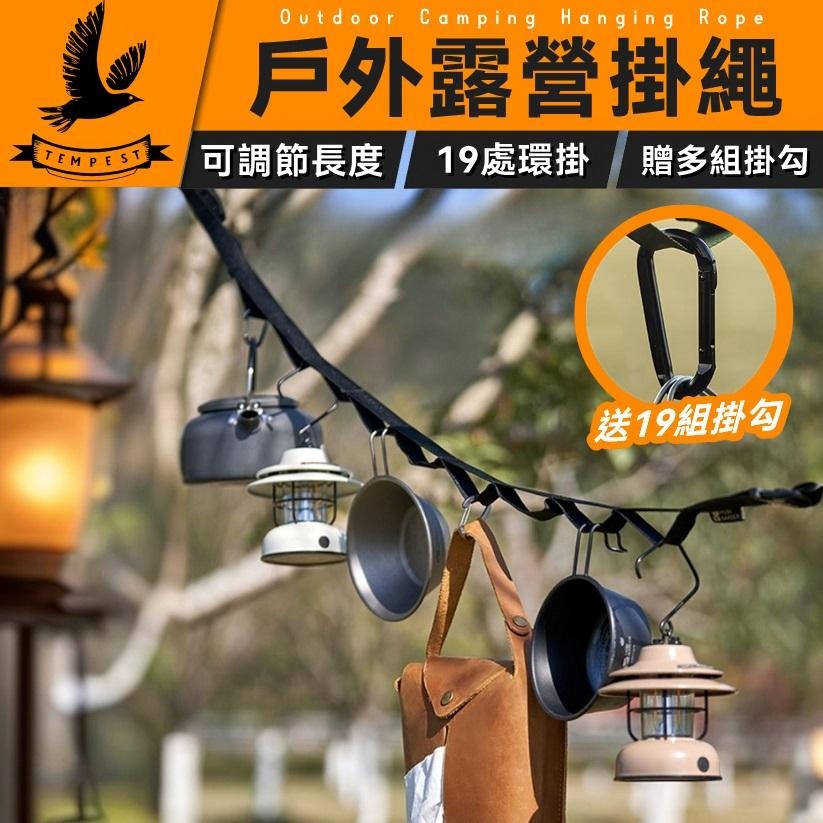 露營掛繩,是您露營時的好幫手。擁有19個掛勾孔,附贈19組掛勾,方便您掛放餐具、露營用品等物品。長度可自行調整,適用於不同場合,讓您的露營生活更加便利。