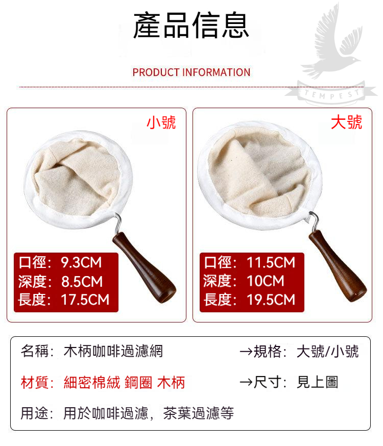 多種尺寸選擇:我們提供多種尺寸的手沖法蘭絨咖啡濾網,以滿足不同咖啡壺的尺寸需求,讓您自由選擇適合您的咖啡器具。