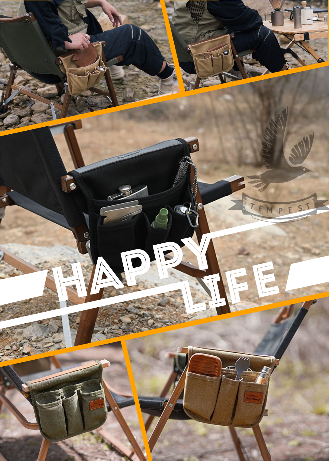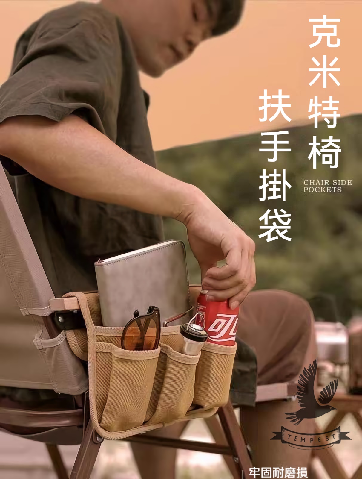 🏕 戶外露營:將克米特椅側邊袋掛在露營椅上,輕鬆收納手機、杯子、雜誌等,讓您享受舒適的露營時光。