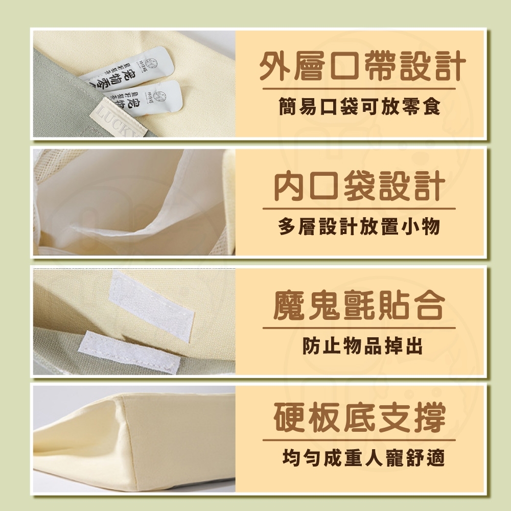 👜 外層魔鬼氈袋口可放毛小孩零食,內層有一開放袋可放小物