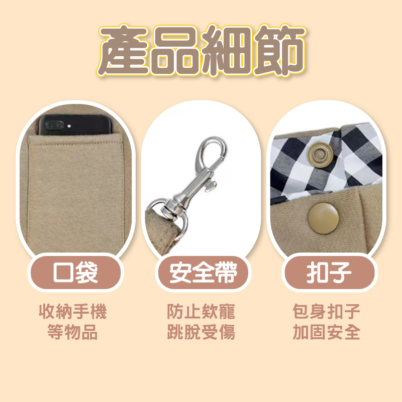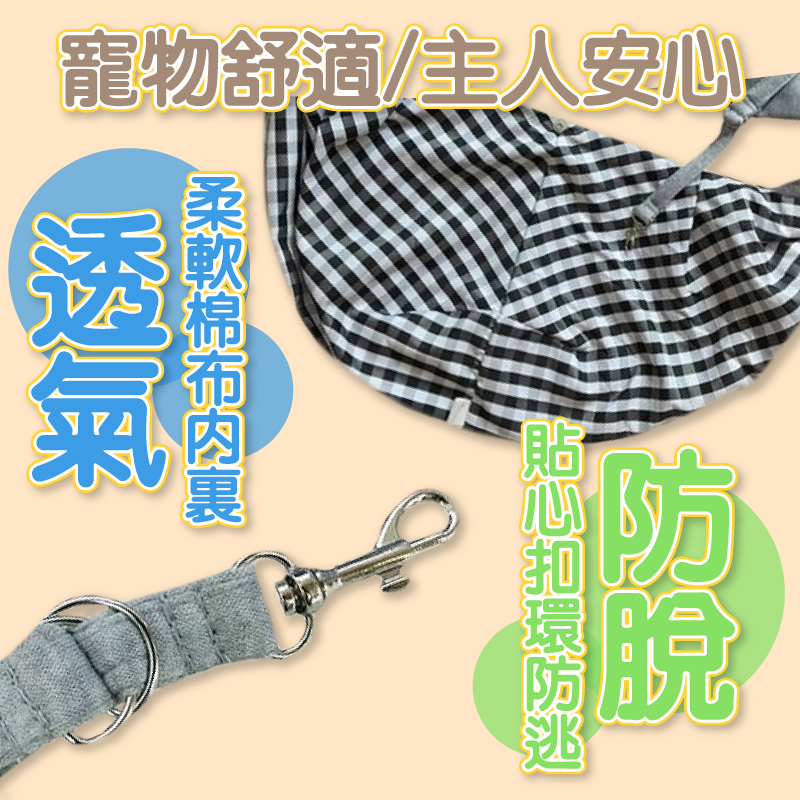 適合小型犬、貓,請搭配胸背帶、牽繩扣住做使用,避免愛寵跳出造成危險