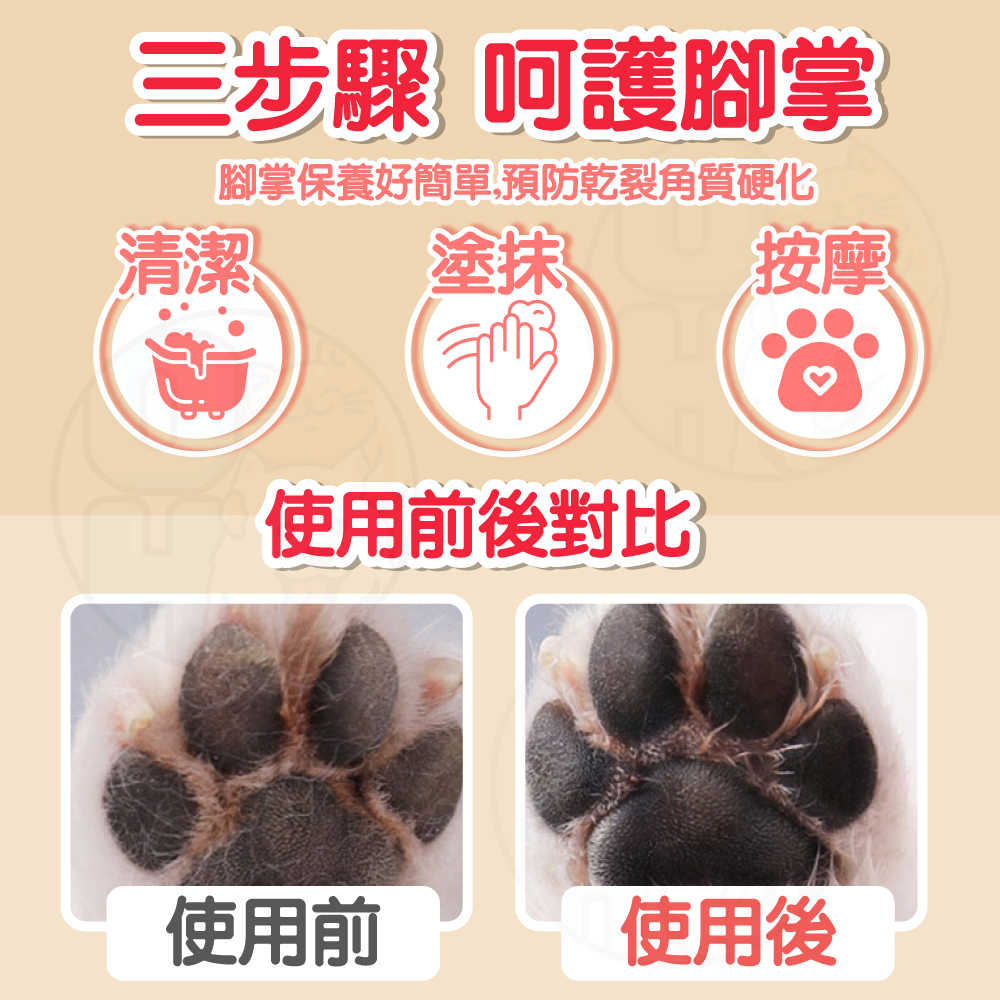 使用前先將毛孩的腳掌以清水或搭配清潔用品擦乾淨,採少量塗抹並按摩肉球,塗抹完後可陪毛孩玩一會讓毛孩分心,防止毛孩過快舔舐,進而降低使用效果❣️