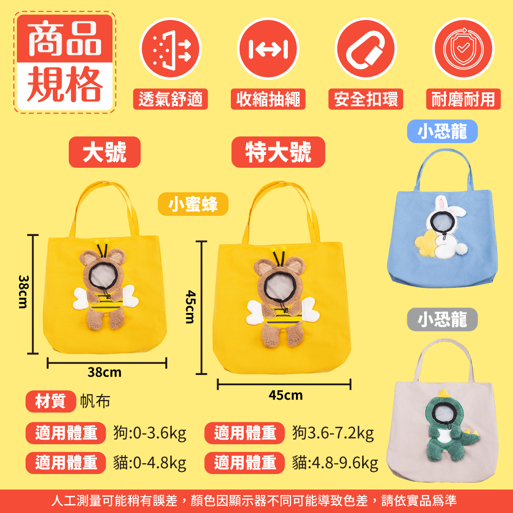 🐝 可愛造型,款式有蜜蜂、兔子和恐龍,讓您的小寵成為眾人注目的焦點