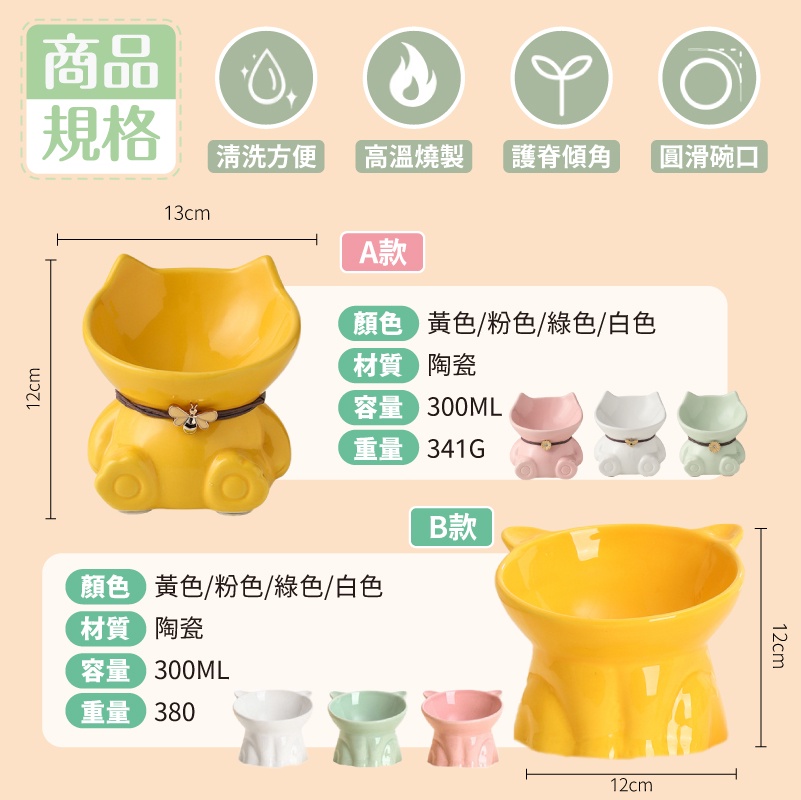 【秒發🔥免運】寵物碗 寵物護頸碗 陶瓷飼料碗 斜口碗 高腳寵物碗 貓咪護頸碗 狗狗護頸碗 防蟻碗 狗碗 貓碗 寵物碗