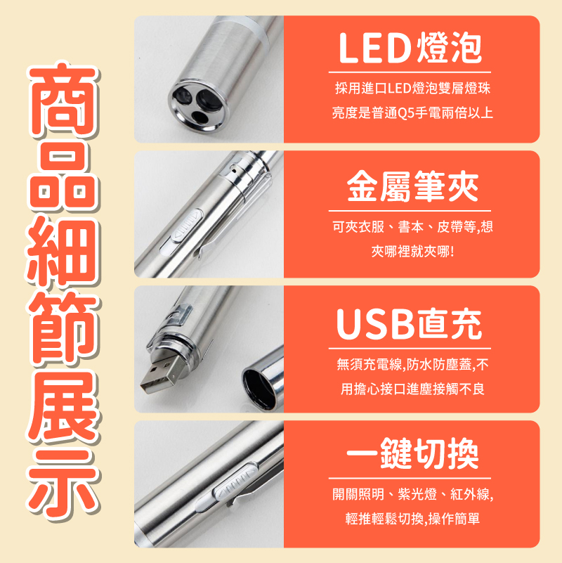 • 【銀色電池款】紅光+白光 【銀色電池款】紅光+白光