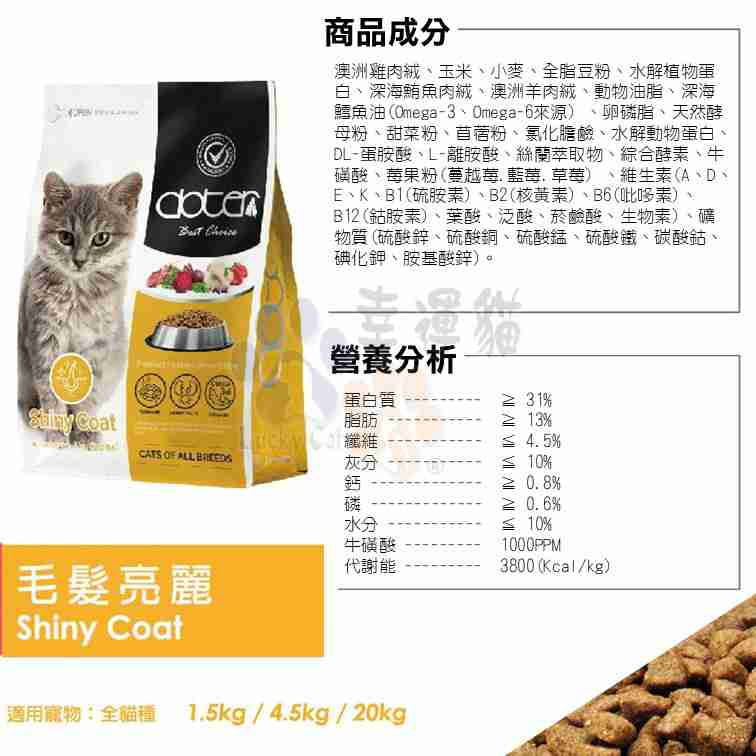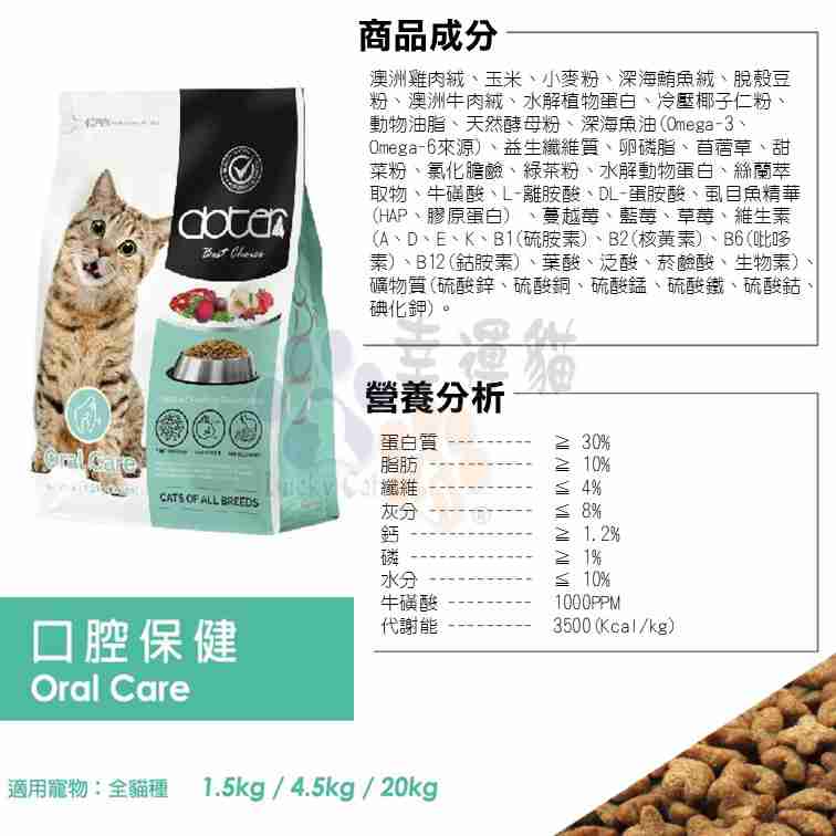 DL蛋氨酸有助於泌尿道保健,依據AAFCO提供成貓維持每日所需營養標準。