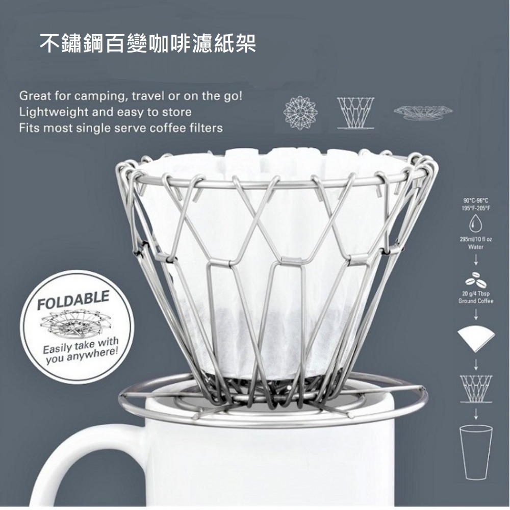 【現貨】304 不鏽鋼摺疊咖啡濾杯:露營登山輕量濾架。適配 155/185 碗型濾紙、手沖濾掛架|專業級戶外咖啡器材