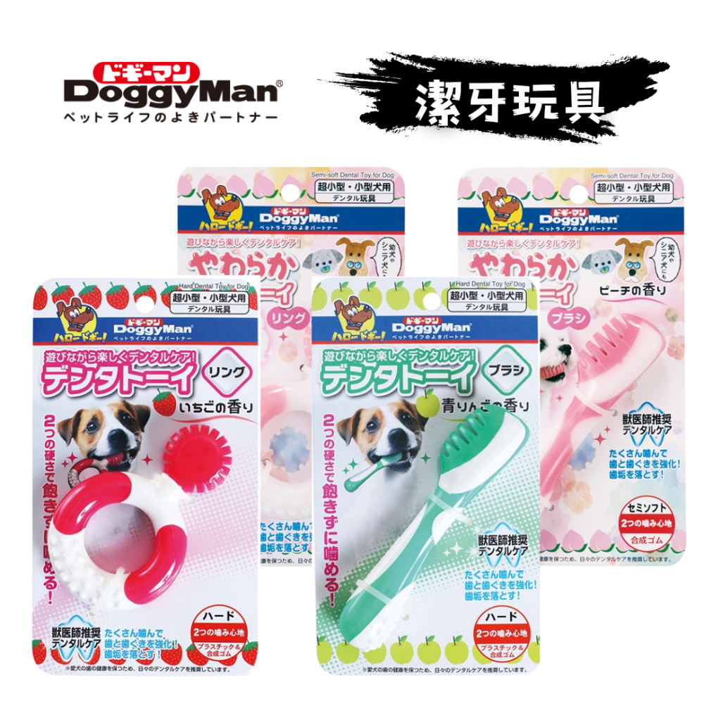 DoggyMan 咬咬果香安全潔齒玩具 圓環與潔牙刷造型 雙重硬度獸醫推薦 狗狗磨牙啃咬玩具 寵物潔齒圈