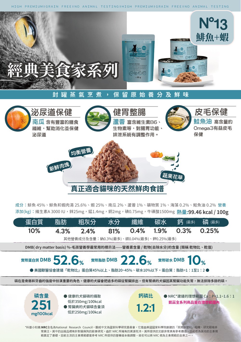 • NO.13鲱魚+蝦無穀主食餐包85G