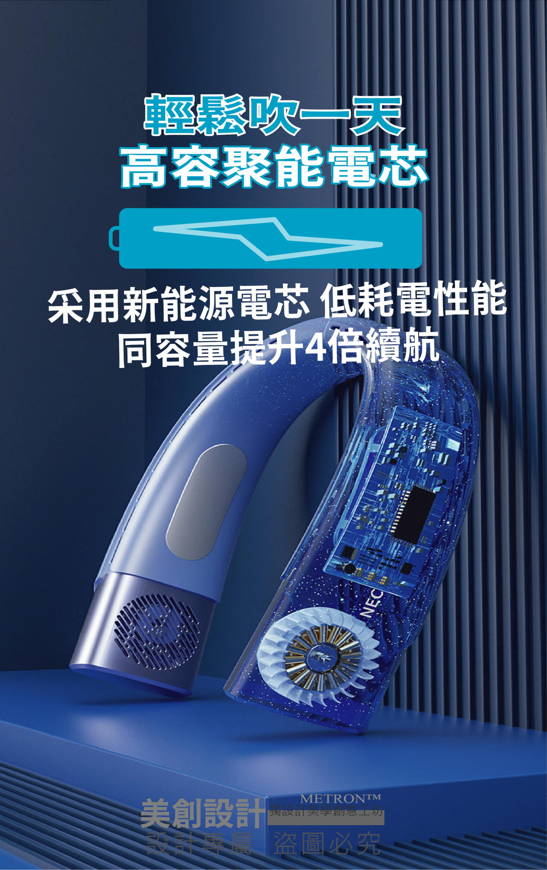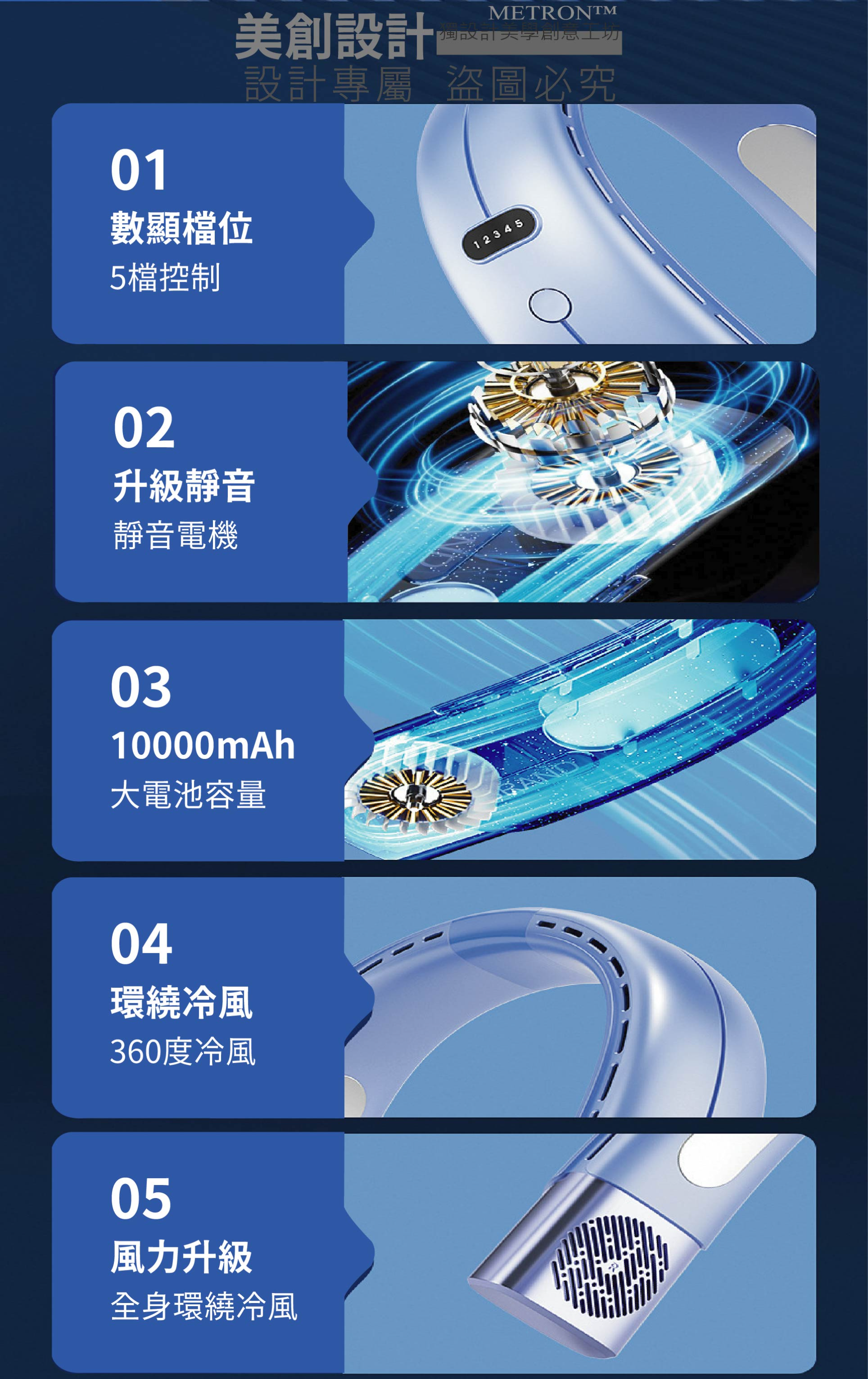產品特色: 掛脖不纏髮 轉頁扇 跌倒自停