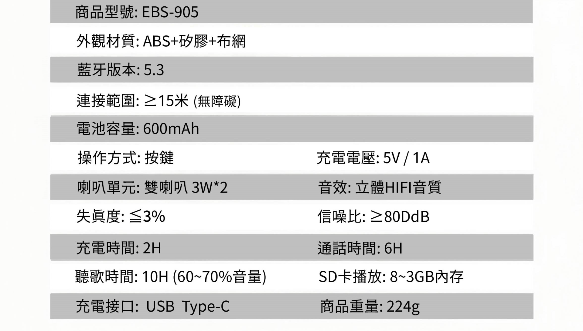 耳機型號: EBS-905