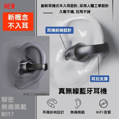 耳機主功能:不入耳 藍牙耳機 耳夾式 HIFI音質 運動戶外 ENC降噪耳機